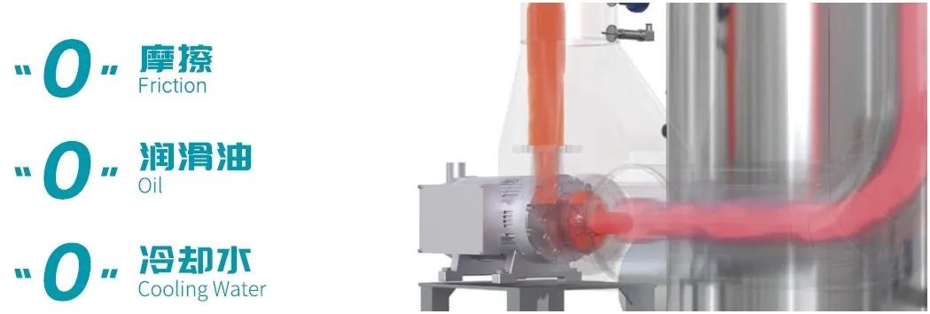 亞光磁懸浮蒸汽壓縮機(jī)基于樂恒成熟可靠的高速直驅(qū)技術(shù),沒有了齒輪箱,可實現(xiàn)“0”機(jī)械摩擦、“0”潤滑油、“0”冷卻水。不僅降低了油霧污染的風(fēng)險,更大大減少了維護(hù)保養(yǎng)需求,相較其他形式的蒸汽壓縮機(jī)具有極大的優(yōu)勢。